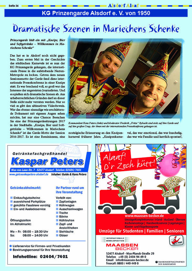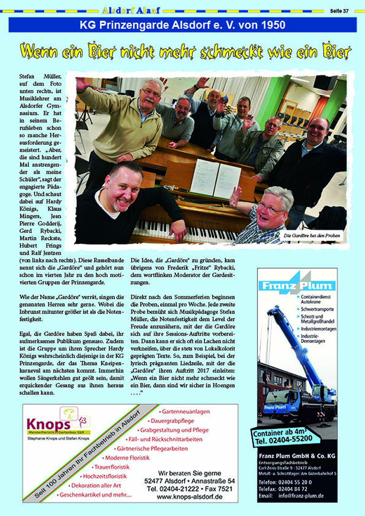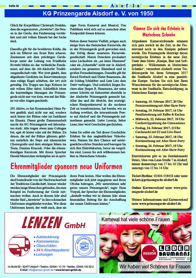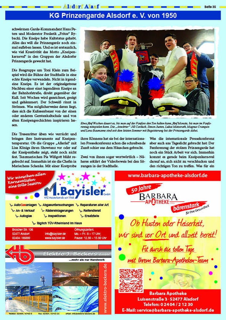 Beitrag in der Karnvealszeitung des Alsdorfer Festkomitees.